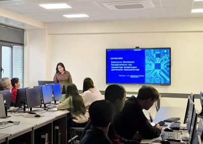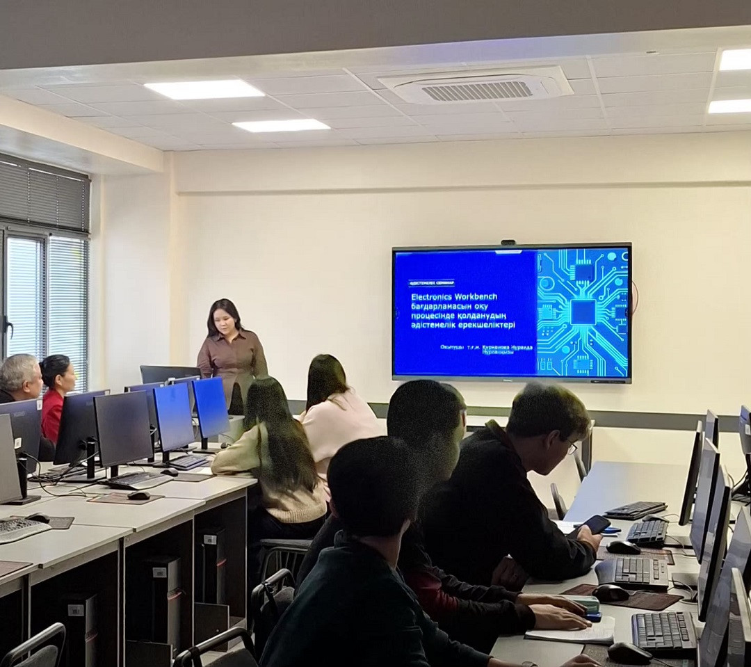 2026 жылғы 27 ақпанда «Автоматтандыру және басқару» кафедрасында «Electronic Worldbench бағдарламасын білім беру үдерісінде қолданудың әдістемелік ерекшеліктері» тақырыбында семинар өтті. Лектор — Н. Курманова.