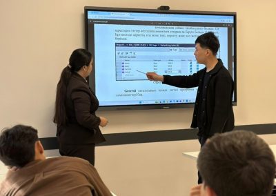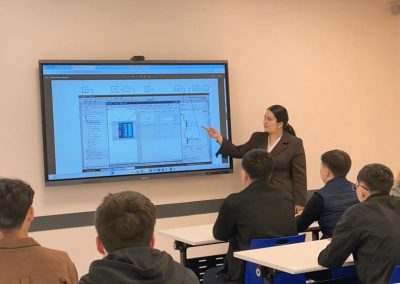 Семинар спикері — кафедра ассистенті Аружан Шинболатовна Карасаева HMI панелін жобалау негіздерін, визуализация құру және тегтермен жұмыс істеу ерекшеліктерін жан-жақты түсіндірді. Болашақ инженерлер өндірістік процестерді басқару интерфейстерін әзірлеудің қыр-сырын іс жүзінде көрді.