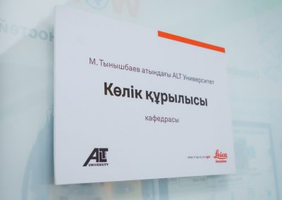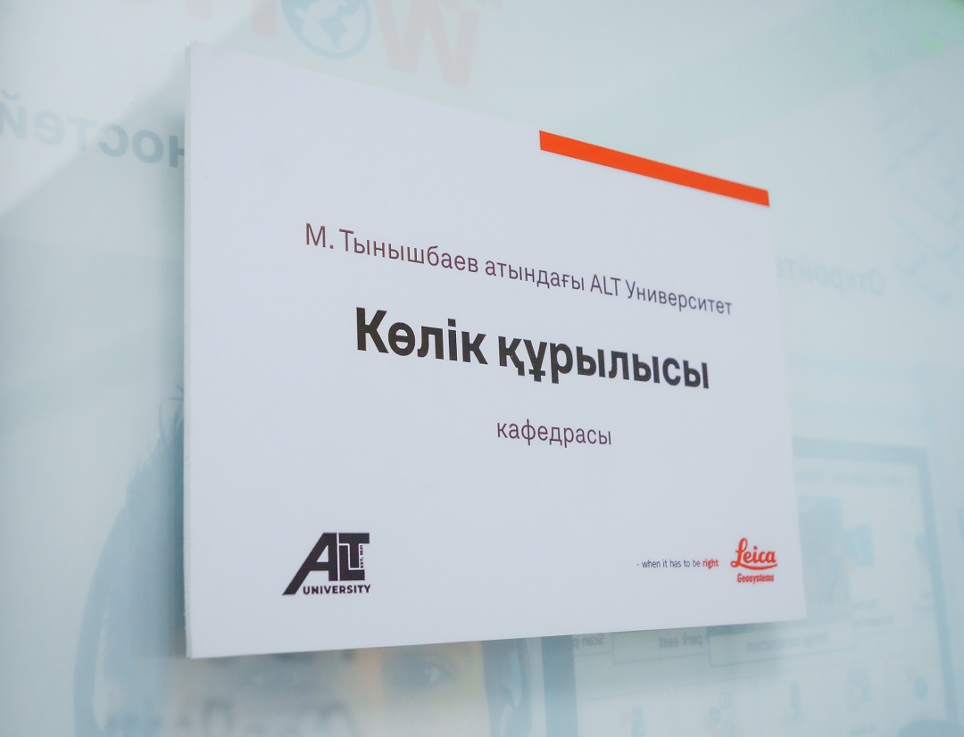 Білім алушылардың практикалық және ғылыми-зерттеу даярлығының сапасын арттыру, сондай-ақ заманауи геодезиялық жабдыққа, цифрлық технологияларға және инновациялық шешімдерге қолжетімділікті арттыру үшін 07.11.2025 ж. «Leica Geosystems Kazakhstan» ЖШС базасында «Көлік құрылысы»кафедрасының филиалы ашылды. Ашылу барысында «Мұхамеджан Тынышбаев атындағы ALT Университеті» АҚ Басқарма Төрағасы-ректоры Меруерт Советқызы Жармағамбетова мен компанияның бас директоры Марина Александровна Кочетованың қатысуымен өтті.