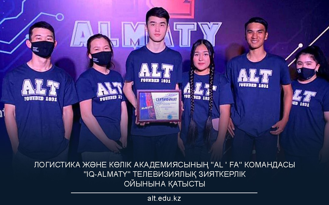 Логистика және көлік академиясы тарихында алғаш рет «IQ-Almaty» телевизиялық зияткерлік ойынына қатысып, 20 жоғарғы оқу орны командасы арасында лайықты ойын өрнегін көрсеткен «AL’fa» тобын шын жүректен құттықтаймыз!