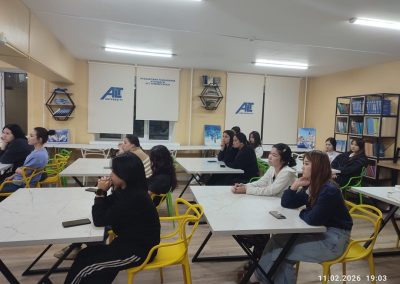 2026 жылғы 11 ақпанда Студенттер үйлерінде (ДС 2–4) «Некеге дейінгі қарым-қатынас: денсаулық, жауапкершілік және саналы таңдау» тақырыбында ақпараттық-түсіндіру кездесуі өтті. Іс-шара Nur Lab Medical Clinic медициналық орталығының қолдауымен ұйымдастырылды. Консультациялық жұмыстарды мейірбике Аягүл Жаңабайқызы Бегдаирова жүргізді.