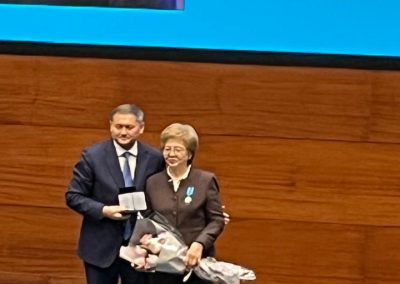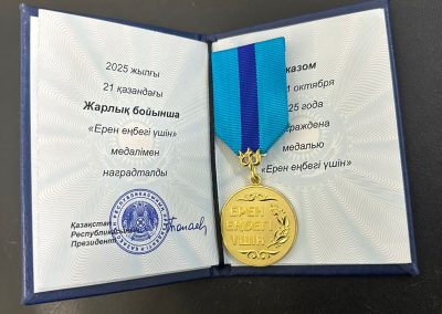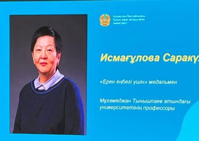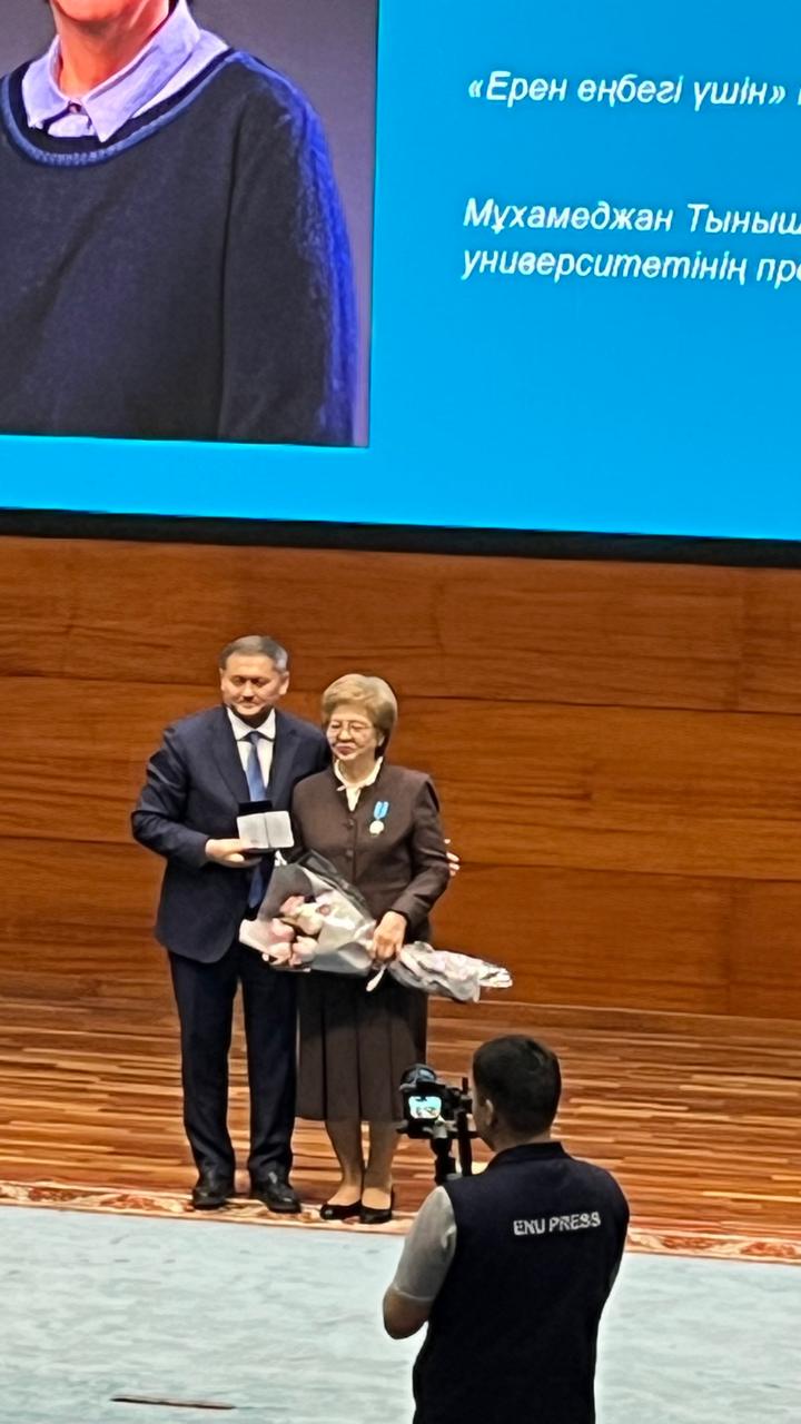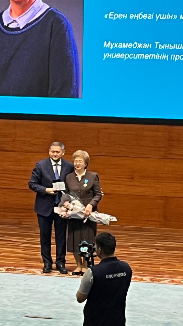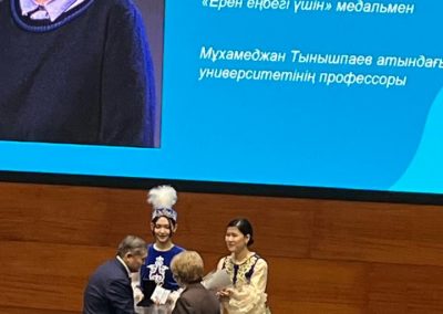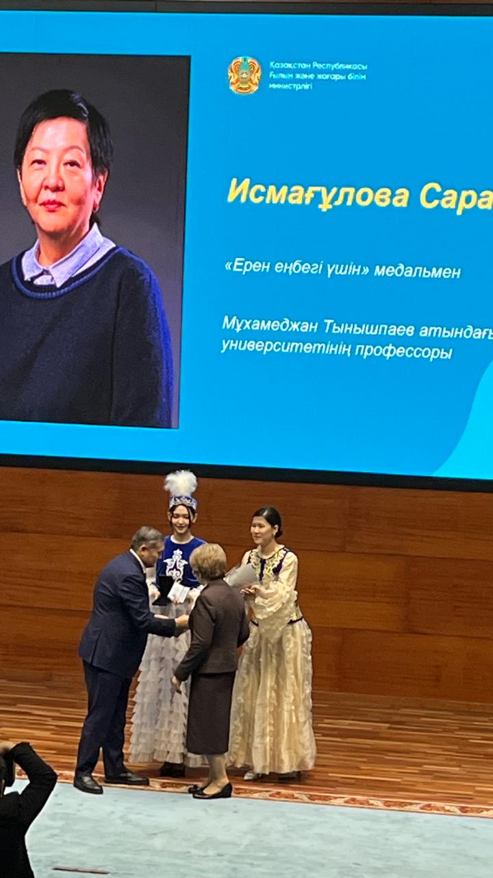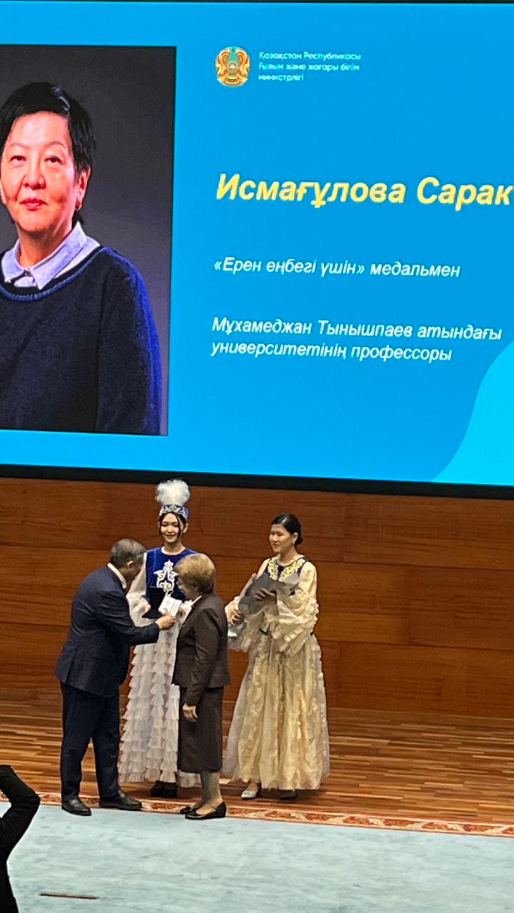 Жоғары білім саласының дамуына қосқан зор үлесі үшін Қазақстан Республикасының Президенті Қасым-Жомарт Кемелұлы Тоқаевтың Жарлығымен “Ерен еңбегі үшін” мемлекеттік медалімен марапатталды.