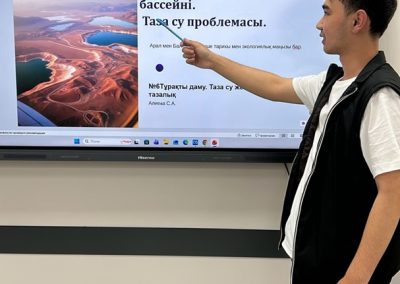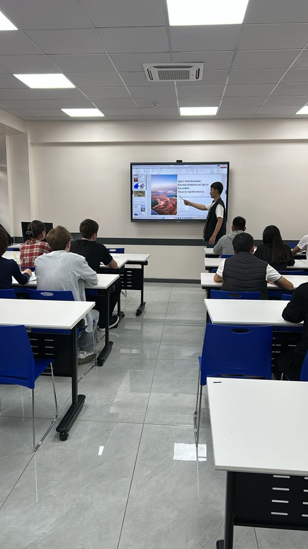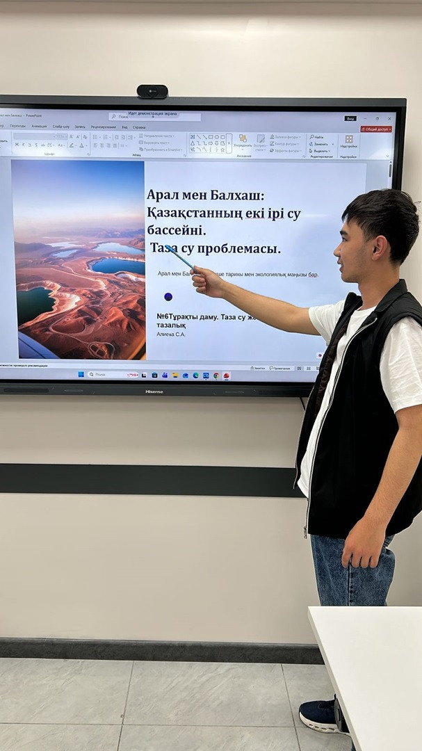 2026 жылғы 2 сәуірде №6 Тұрақты даму мақсаты «Таза су және санитария» аясында 398, 393 және 397 топтарында «Экология. Арал мен Балқаш проблемалары» атты семинар өтті. Language Education кафедрасының сениор-лекторы Салима Алиева Арал мен Балқаш экологиялық дағдарысы — бүкіл Орталық Азиядағы адам іс-әрекетінің әсерінен болған экологиялық апаттың айқын мысалы екенін атап өтті.