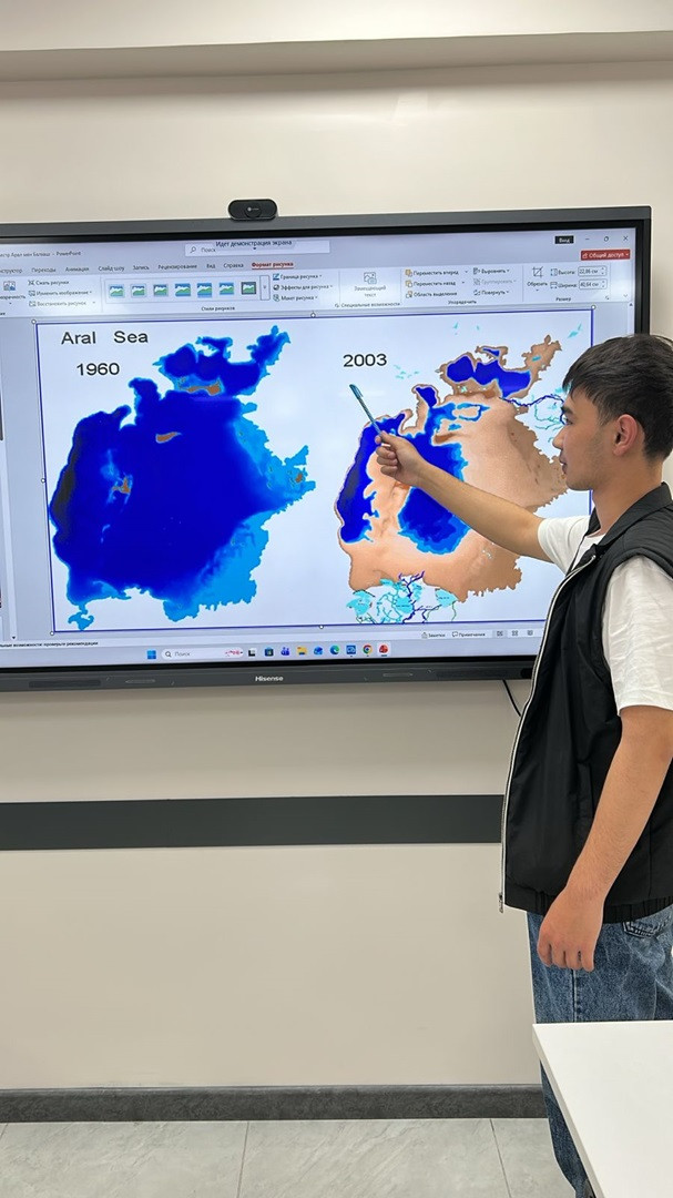 Арал теңізі деңгейінің апатты түрде төмендеуіне халық санының өсуі, суармалы жерлердің 2-3 есе ұлғаюы және суды шамадан тыс тұтыну негізгі себеп болды. Іс-шара студенттердің экология туралы білімін тереңдетіп, қоршаған ортаны қорғауға деген көзқарастарын өзгертті.