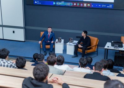 Кездесу барысында қонағымыз өзінің өмірлік тәжірибесімен бөлісіп, табысқа жету жолындағы сын-қатерлер мен мүмкіндіктер туралы әсерлі әңгіме өрбітті. Ол жастарға үлкен армандардан қорықпауға, әрбір қиындықты жаңа мүмкіндік ретінде қабылдауға шақырды.