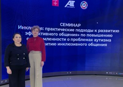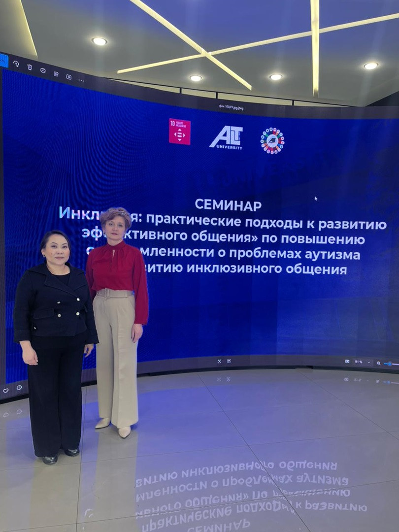 Бүгін университетімізде аутизм мәселелерін түсіндіру және инклюзивті қарым-қатынасты дамыту «Инклюзия: тиімді қарым-қатынасты дамытуға арналған практикалық тәсілдер» тақырыбында семинар өтті. Іс-шара екі сессия форматында ұйымдастырылды: студенттер мен эдвайзерлерге арналған (12:00–12:40) және ППС оқытушыларына арналған (12:40–13:40). Спикер ретінде психология ғылымдарының кандидаты, доцент Елена Владимировна Мусихина сөз сөйледі.