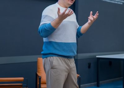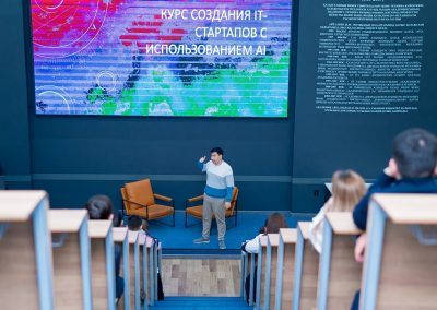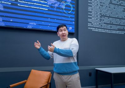 Дәріс барысында спикерлер IT-стартаптарды дамытудың заманауи тенденциялары туралы айтып, бағдарламалық өнімдерді әзірлеудегі тәжірибелерімен бөлісті, сондай-ақ React, Next.js, TypeScript және React Native сияқты фронтенд әзірлеудің заманауи технологияларына тоқталды. Сонымен қатар, серверлік қосымшаларды әзірлеуде қолданылатын NestJS және MongoDB технологиялары да қарастырылды.