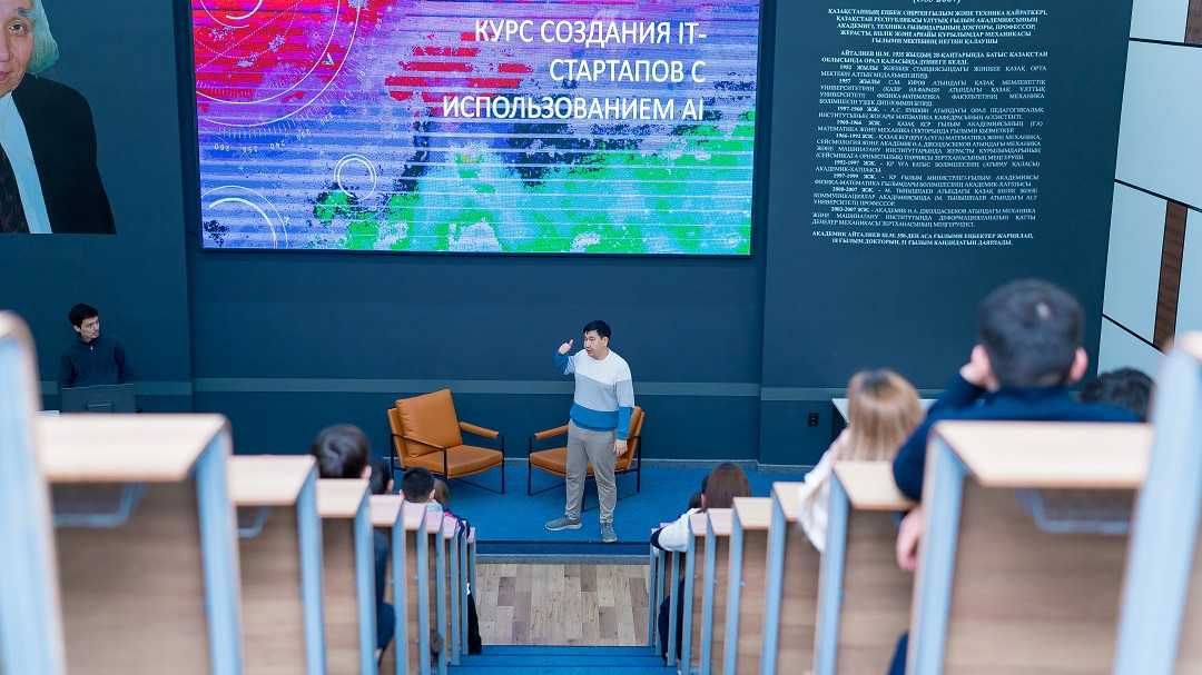 2026 жылғы 11 наурызда Тұрақты даму мақсатының №4 «Сапалы білім» бағытын іске асыру аясында 6B06116 «Ақпараттық жүйелер», 6B06172 «Үлкен деректер технологиялары», 6B06118 «Бағдарламалық инженерия», 6B06126 «Қолданбалы жасанды интеллект» білім беру бағдарламаларының студенттеріне арналған «AI қолдану арқылы IT-стартаптарды құру» тақырыбында қонақ дәрісі ұйымдастырылып, өткізілді.