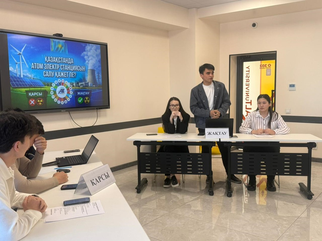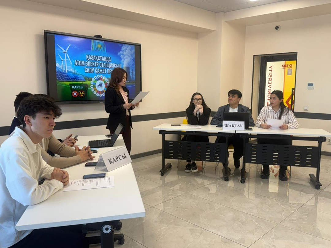 «Энергетика және сандық технологиялар» институтының «Автоматтандыру және басқару» кафедрасының 3-курс студенттері арасында «Қазақстанда атом электр станциясын салу қажет пе?» тақырыбында мазмұнды дебат ұйымдастырылды. Іс-шара Біріккен Ұлттар Ұйымы ұсынған Тұрақты даму мақсаттарының 7-бағыты — Қолжетімді және таза энергия аясында өткізілді.