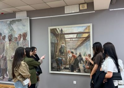 Экспозицияның үш қабатын аралай отырып, студенттер бейнелеу өнерінің жауһарларымен танысты. Әр туындының жанындағы QR-кодтарды қолдану арқылы картиналардың мазмұны мен идеялық мәніне тереңірек талдау жүргізілді. Бұл мәдени іс-шара студенттердің рухани-танымдық дамуына ықпал етіп, олардың мәдени құндылықтарды қабылдау қабілетін арттырды. Рухани байлықтың қалыптасуы мәдени ортаны сезінуден және өнерді бағалаудан басталатыны тағы бір мәрте дәлелденді.