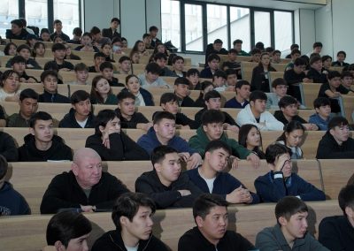 Студенттер қонақтарға көкейіндегі сұрақтарын қойып, кәсіби спорттың қыр-сырымен жақынырақ танысуға мүмкіндік алды. Шынайы әңгіме мен мотивацияға толы бұл кездесу жастарға үлкен рухани серпіліс беріп, спортқа деген қызығушылықты арттырды.