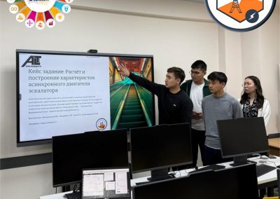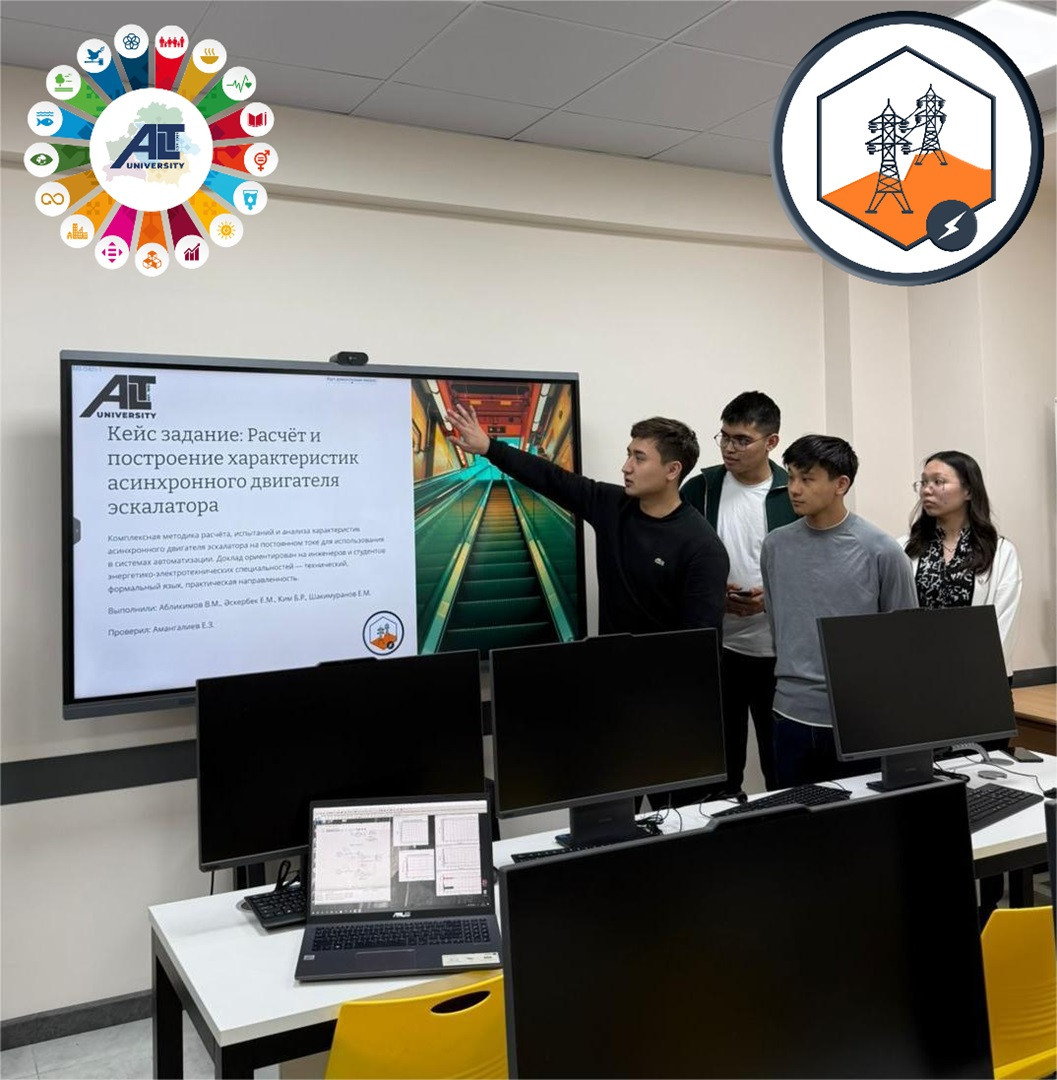 Студенттер электржетектерін басқару жүйелерін әзірлеу мен модельдеуге арналған кешенді кейс-жобаларды сәтті қорғады. Жұмыстар сениор-лектор Амангалиев Е.З. жетекшілігімен орындалып, студенттердің жоғары дайындық деңгейін және заманауи инженерлік бағдарламалық пакеттерді меңгергенін көрсетті.